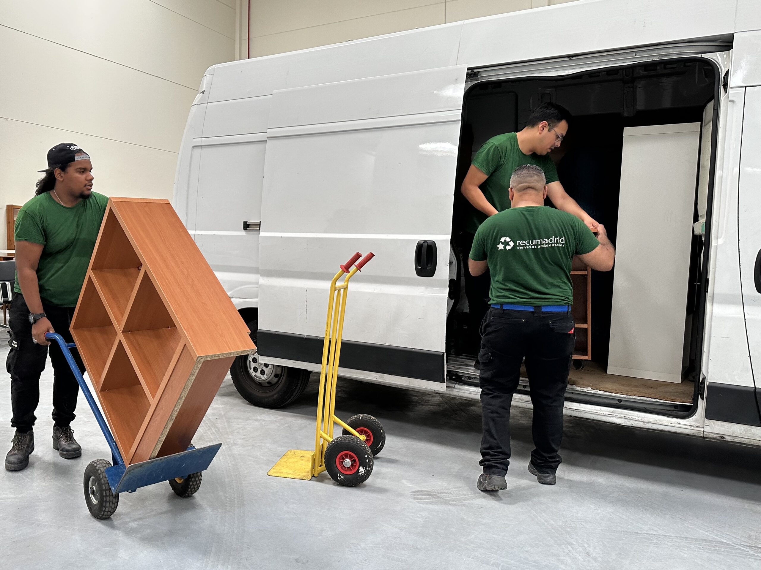 Esta, sin duda, es la pregunta que más nos realizan al pensar que es un trabajo gratuito. Al contrario que los servicios que ofrecen los ayuntamientos, los trabajadores de Recumadrid recogen los productos en la propia casa, siendo ellos los que lo trasladan al exterior. Además, de desmontarlos en caso de necesidad.
